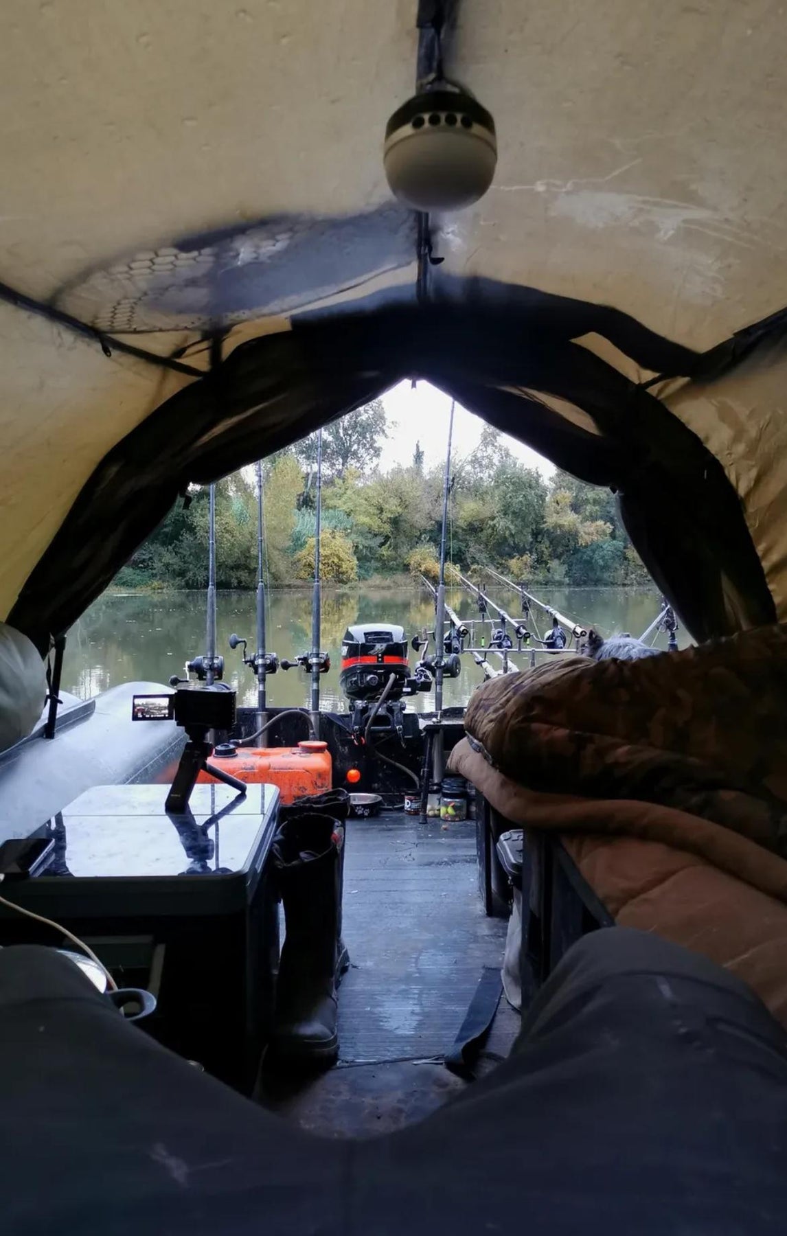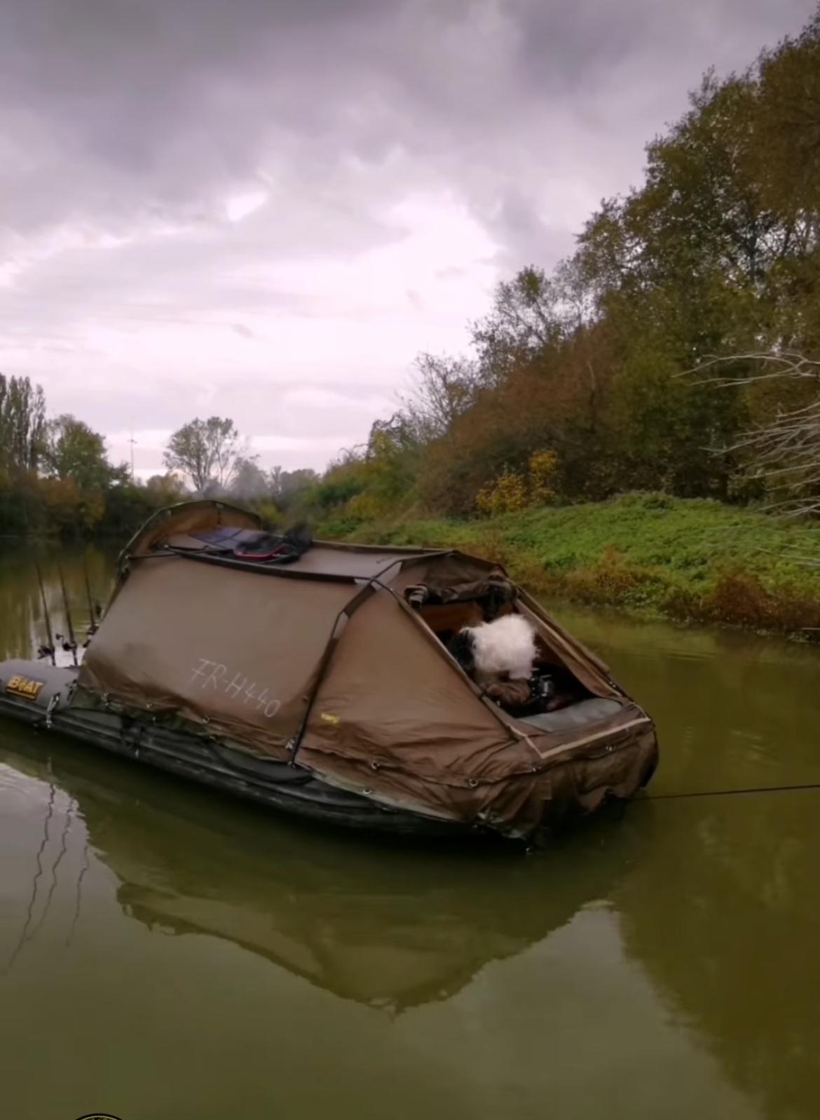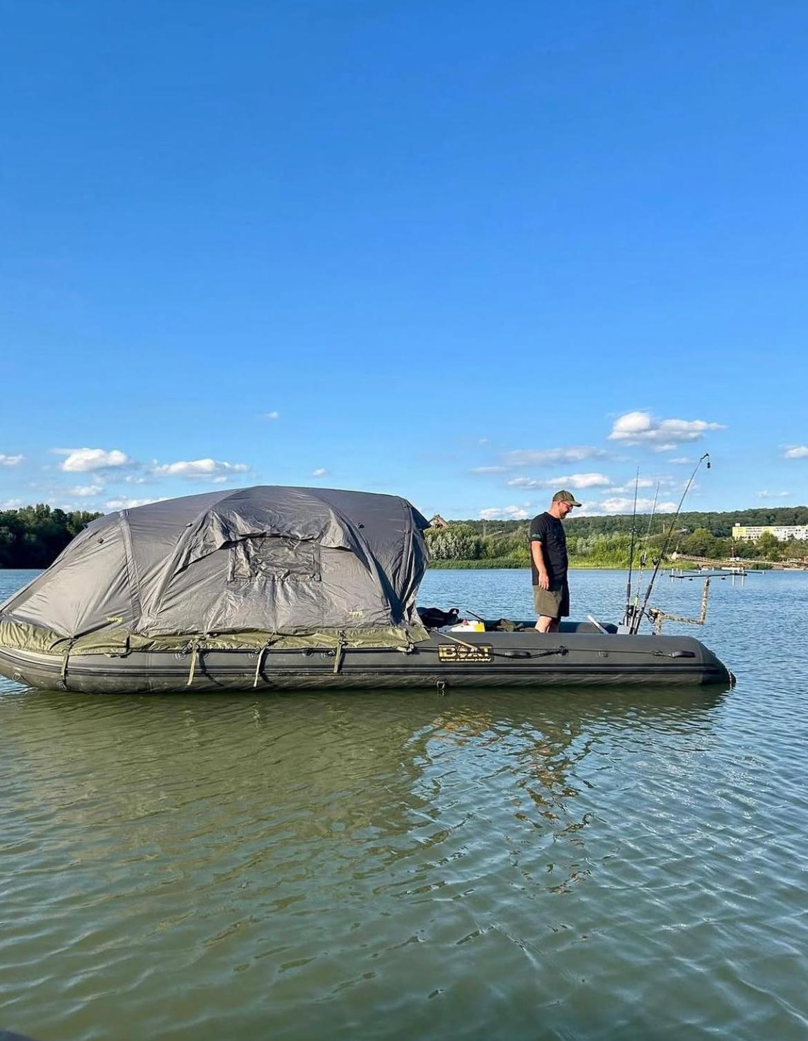 Das ist das iBoat 500 mit dem Black Cat Cave 2 Zelt von @vincent_wildling , welches sehr solide seit Jahren verwendet wird. Es ist nicht zu dunkel im Zelt, auch ohne Fenster nicht.
